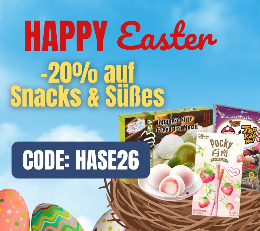 Spare -20% auf Snacks & Süßes (RABATTCODE: HASE26) und finde mit etwas Glück ein Golden Egg in deiner Bestellung 🐰✨